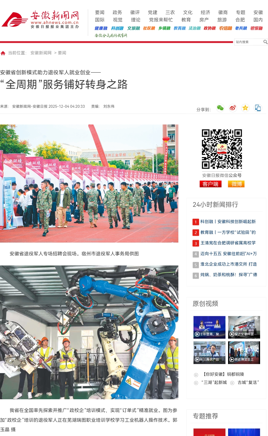 我校2025年组织的退役军人“政校企”示范培训班获安徽日报报道